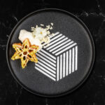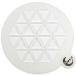 Leg het stencil op het bord. Strooi er met behulp van de Plate-it decoratiezeef een droog ingrediënt (bijvoorbeeld poeder of kruiden) overheen. Til het stencil voorzichtig op met behulp van het lipje. De vorm wordt op het bord zichtbaar. Gevorderde koks kunnen dit stencil ook gebruiken om met puree de vormen ook op het bod te maken. Verdeel de puree in het stencil met een Plate-it knikspalel en verwijder het voorzichtig.