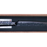 Het mes wordt in een luxe houten gebrand kistje geleverd.