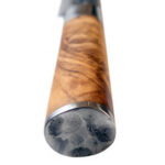 Het handvat is gemaakt van hout van de olijfboom. Hout wat langzaam groeit en dus hard materiaal is. Elk heft is dan ook uniek qua tekening en kleur.