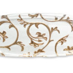 De ovale schaal heeft een vlakke basis, de decoratie is aan de buitenkant aangebracht en met de hand gedecoreerd. Deze schaal kan gebruikt worden voor een heerlijke cake, maar natuurlijk ook voor delicate hapjes.