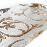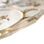 Glazen Cakeschaal Bisanzio-IVV met Gouden decoratie, ovale schaal van transparant glas met daarin gegraveerd gouden decoraties. De naam van deze schaal is Bisanzio.