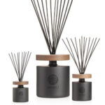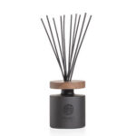 Gehuld in een elegant zwart glazen fles, straalt deze diffuser een tijdloze klasse uit die naadloos opgaat in elke ruimte. Het op Italiaanse leest geschoeide ontwerp wordt bekroond door een massief houten deksel, wat een vleugje natuurlijke warmte toevoegt aan het geheel.