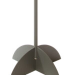 De standaard is poedercoat bewerkt staal met een messing inzetstuk. Het glaswerk is handgeblazen glas.