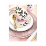 De Kop & Schotel Papillon 24k Goud van Christina Re brengt een vleugje elegantie en magie naar je theemoment. Deze prachtige limited edition theekop en schotel zijn versierd met verfijnde vlinders in zachte pasteltinten. De delicate illustraties zijn met de hand aangebracht en afgewerkt met schitterende details van echt 24 karaat goud, wat het servies een luxe uitstraling geeft.