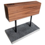 Een mooi en functioneel messenblok van walnoothout in combinatie met natuursteen. Het houten blok is magnetisch. Aan u de keus voor zwarte of goudkleurige stangen. Beiden worden geleverd.