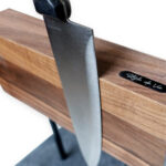 Het blok is aan weerskanten te gebruiken en dan kunnen er 5 messen per kant op gehangen worden.