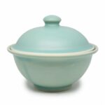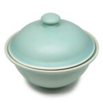 De serveerkom met deksel heeft een prachtige lichtgroene kleur met een subtiele blauwe gloed, wat bijdraagt aan zijn esthetische charme.