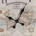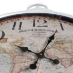 Deze prachtige wandklok verdient zeker je aandacht. Hij is vervaardigd uit stevig metaal en siert met trots een nostalgische wereldkaart op de wijzerplaat. De klok heeft duidelijke, grote cijfers en sierlijke wijzers die hem een klassieke uitstraling geven, als een vergrote versie van een origineel zakhorloge met aangedreven mechaniek.