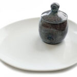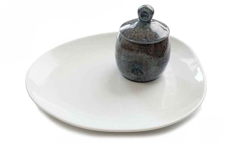 Äggcøddler onderbord. Een porseleinen serveer schaal bestemd voor de Äggcøddler. Dit is een aardewerk potje voor het perfecte ei gerechtje.