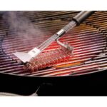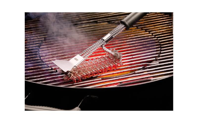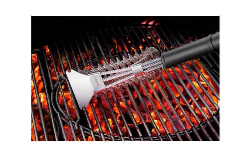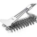 Voor extra gemak is de borstel uitgerust met een geïntegreerde schraper waarmee je vastzittende resten eenvoudig losmaakt. Het extra lange handvat biedt een veilige afstand tot de hete barbecue en zorgt voor een comfortabele grip tijdens het schoonmaken.