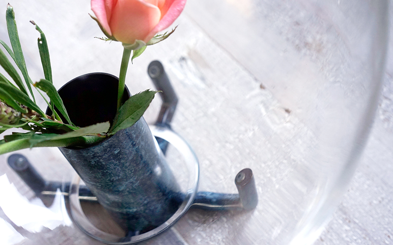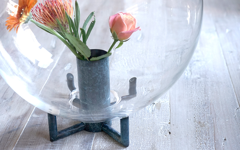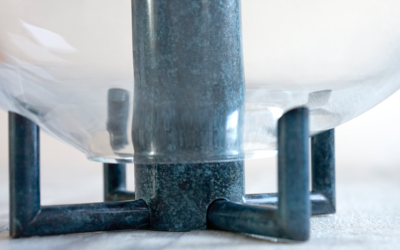 ORB  is een vaas waar het glas van zichzelf al een plaatje is voor de plant. De glazen bol lijkt op een plantenkas en past goed bij planten met een hoge behoefte aan vochtigheid. De binnenkant is gemaakt van geoxideerd brons en het glas is mond geblazen.
