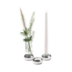 Een geweldig cadeau om iemand te geven, deze gift set Constella van Klong. In een mooie doos zitten drie artikelen, een Kandelaar–Vaasje–Theelichthouder van gepolijst aluminium.