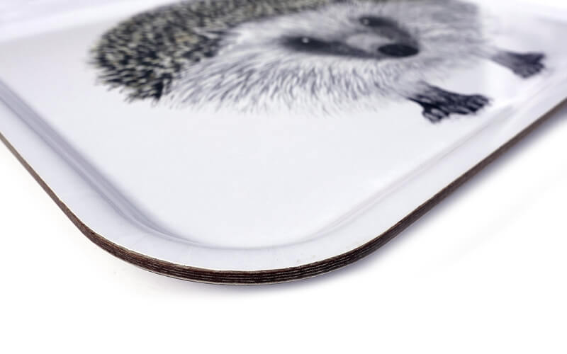 Ontbijt op bed, afternoon tea of gasten serveren op een cocktailparty? Dit rechthoekige dienblad is versierd met het kunstwerk van Charlotte Nicolin. Henry de egel inspireerde de kunstenaar tot het maken van dit prachtige portret.