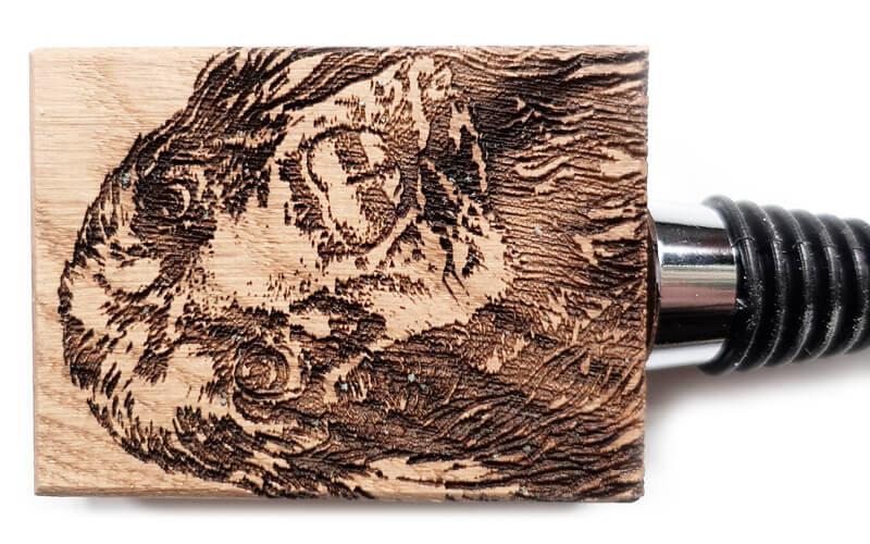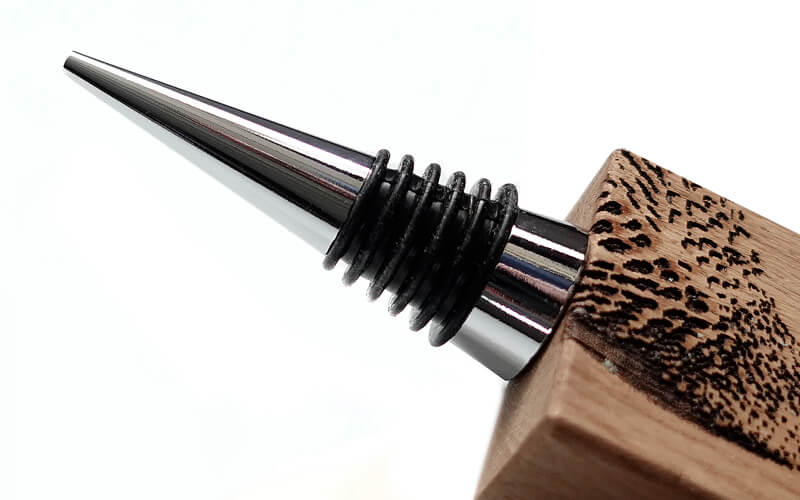 De natuurlijke houtstructuur geeft iedere stop een unieke uitstraling, terwijl de gedetailleerde gravure zorgt voor karakter en herkenning. Dankzij de rubberen ring sluit de stop je fles luchtdicht af – perfect voor wijn, olie of andere flessen die je goed wilt bewaren.