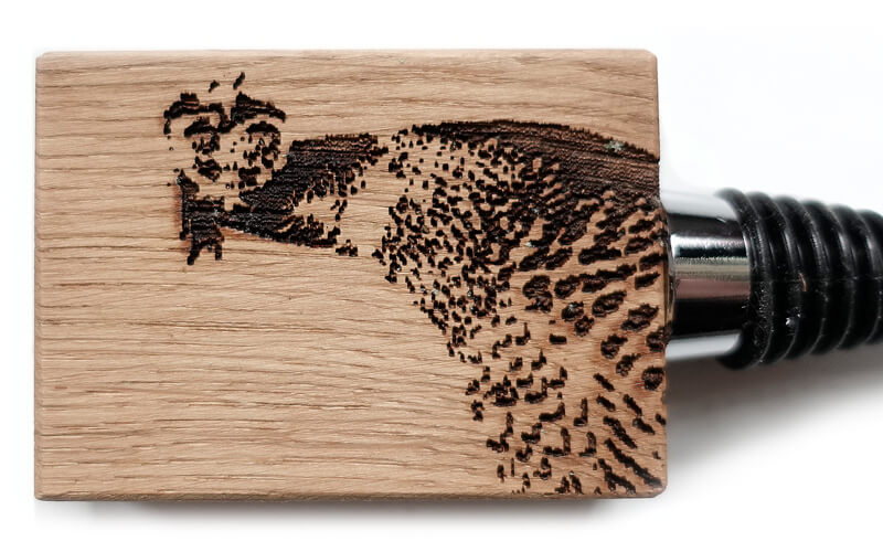 Geef je fles een stijlvol en natuurlijk accent met deze ambachtelijke flessenstop van massief eikenhout. Het hoofd van een fazant is met zorg in het hout gebrand, waardoor een warme en gedetailleerde illustratie ontstaat die direct de aandacht trekt. Elk stuk is uniek en straalt vakmanschap en rustieke charme uit.