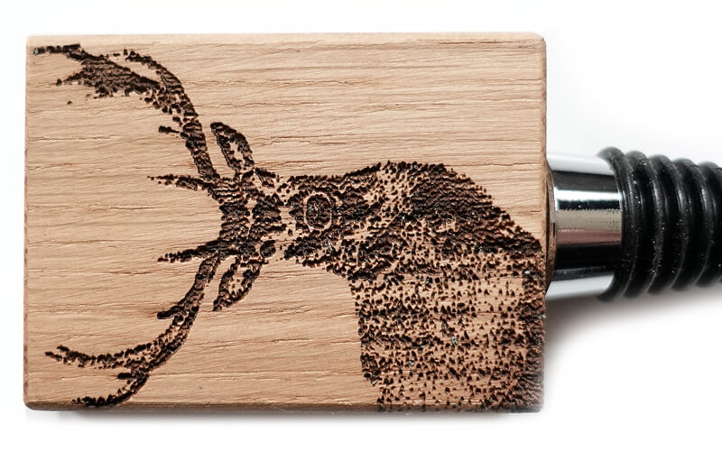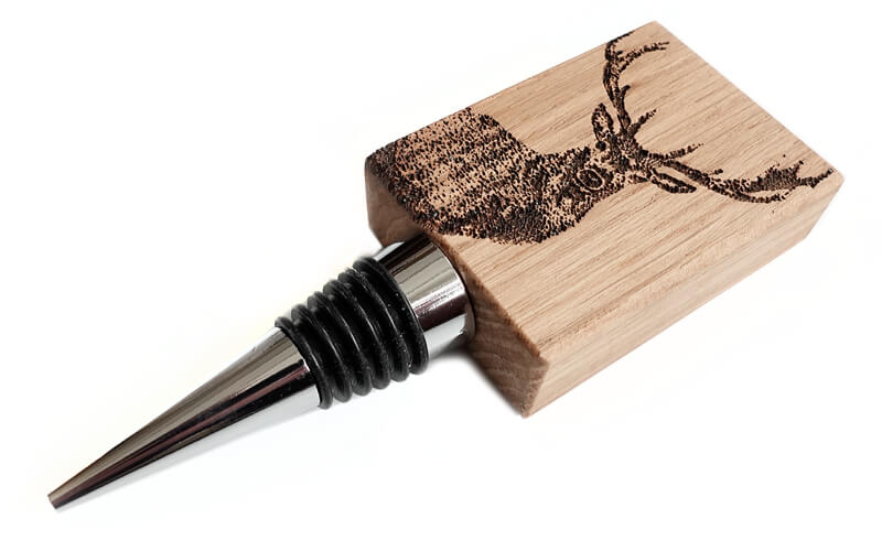 Flessenstop Hert – Eikenhout met Gebrande Gravure | Kadeloo.nl
