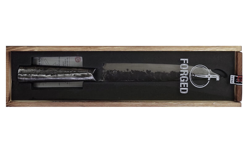 Ontdek het Forged Brute Vleesmes, verpakt in een luxe houten kist. Het behoort tot de prestigieuze Forged Brute-serie, met de kwaliteitsgarantie van het merk Forged. Het is ontworpen om zowel rauw als bereid vlees te snijden.