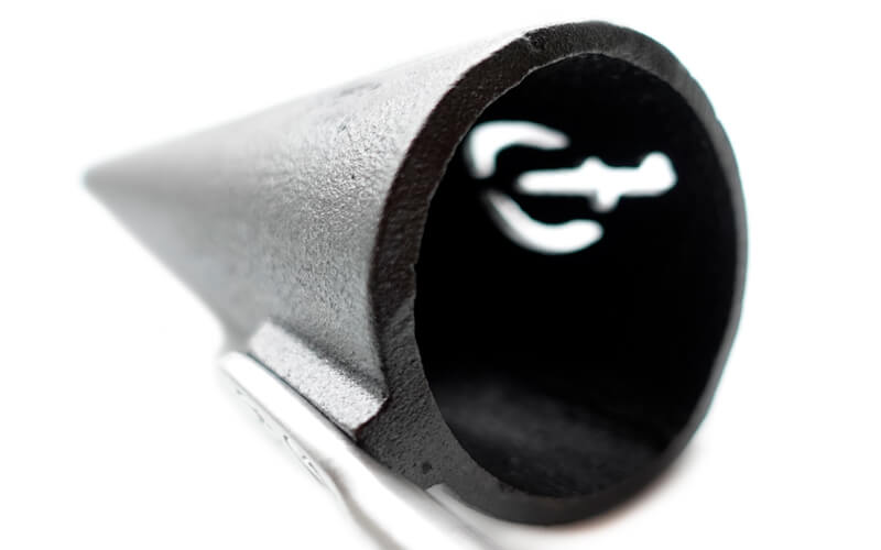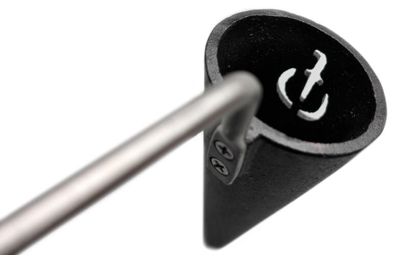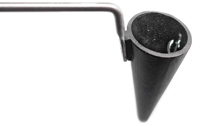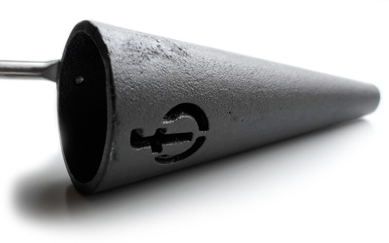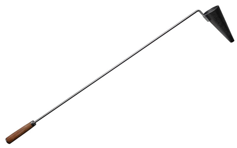 gietijzeren kegel aan een RVS steel en een olijf houten handvat.