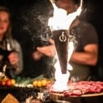 Het is niet het enige wat de Flambadou is, het wordt een show, een echte beleving om op deze manier de gerechten te bewerken.