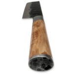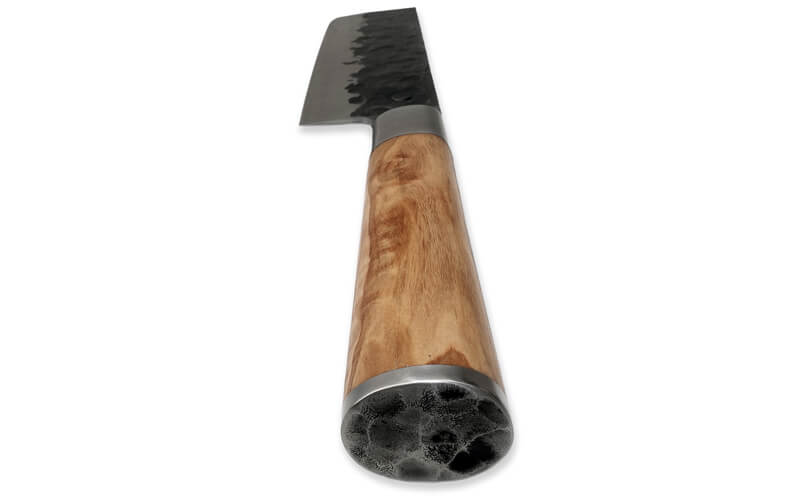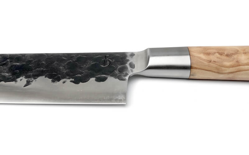 Wat de Olive serie onderscheidt, is het prachtige olijfhouten handvat met aan het uiteinde een gesmede pommel. Het biedt niet alleen een stevige grip, maar voegt ook een vleugje warmte en elegantie toe aan uw keuken.