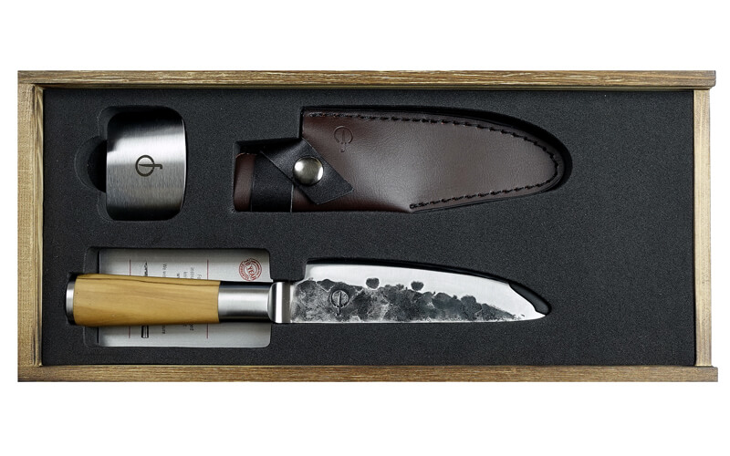 Het handvat is vervaardigd uit olijfhout, wat het mes een bijzondere uitstraling geeft. Let op, dit mes is niet geschikt voor de vaatwasser.