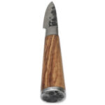 Het Forged Olive universele mes is ontworpen om de tand des tijds te doorstaan, met het hand gesmeed lemmet van hoogwaardig Japans roestvrijstaal. Dit lemmet biedt niet alleen uitzonderlijke scherpte, maar ook duurzaamheid.