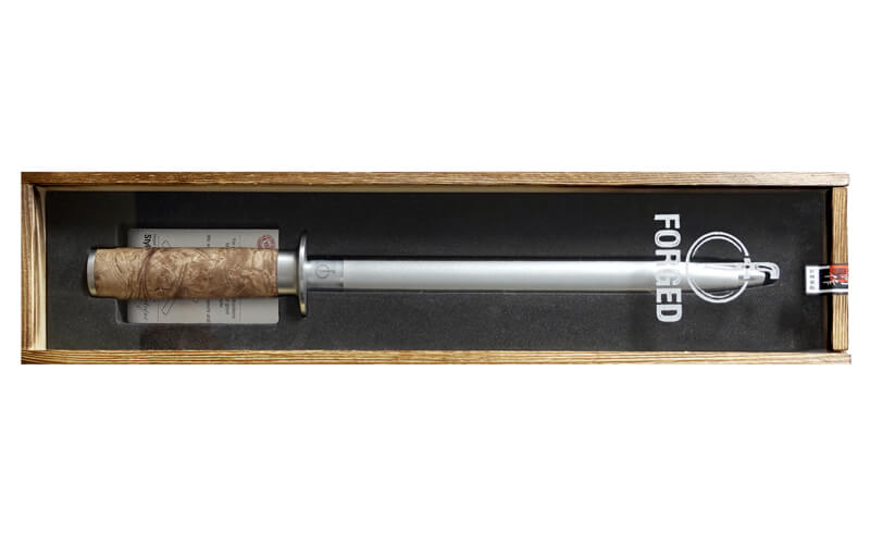Een aanzetstaal van het merk Forged uit de serie VG10. Hier houdt u de keukenmessen (zonder kartels) vlijmscherp. Een onmisbaar stukje gereedschap in de keuken.
