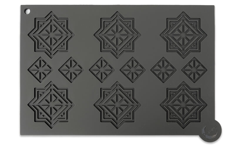 Verwarm de oven voor en vul de mal met beslag. Verwijder overtollig beslag met een Plate-it knikspatel. Bak in de oven tot het beslag gaar is. Haal je creatie voorzichtig met de Plate-it precisie-pincet uit de mal. Je kunt de mal ook gebruiken voor koude decoraties zoals chocolade of gelei. Laat het opstijven in de vriezer en druk voorzichtig uit de mal terwijl het nog bevroren is. Zo behoud je creatie zijn vorm.