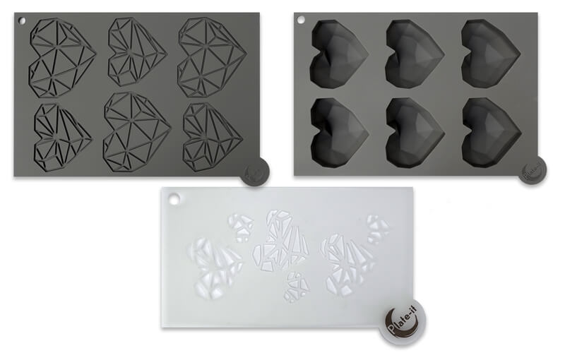 Een set van 3 Garneermallen Love at First Bite van het merk Plate-it. Hiermee maak je allerhande vormen die jouw met zorg gemaakte gerechten écht tot een hoger niveau tillen.