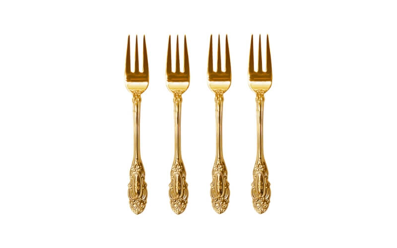 Gebaksvorkjes Vintage 24 Kr Goud Verguld Christina Re, zij zitten verpakt in een set van 4 stuks.