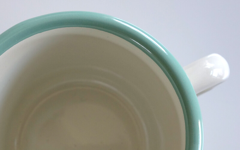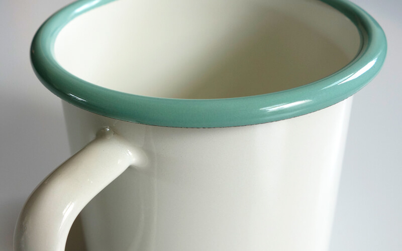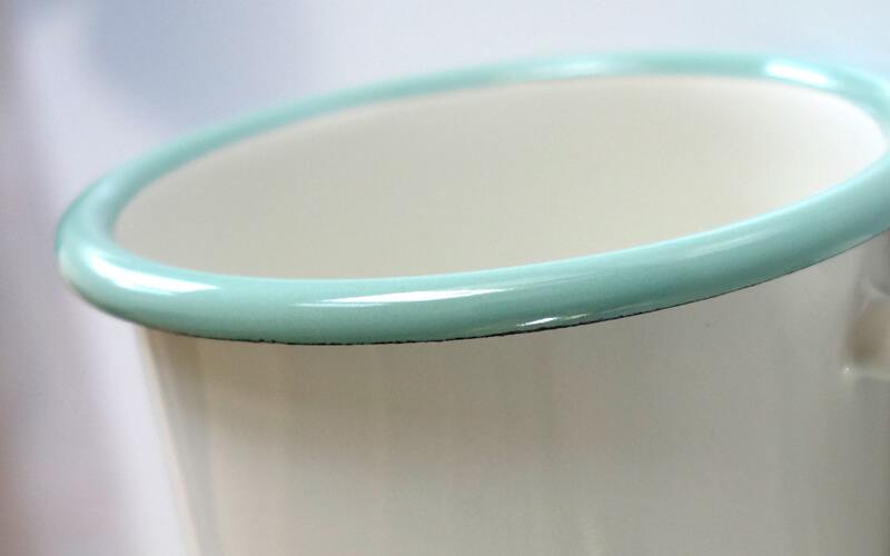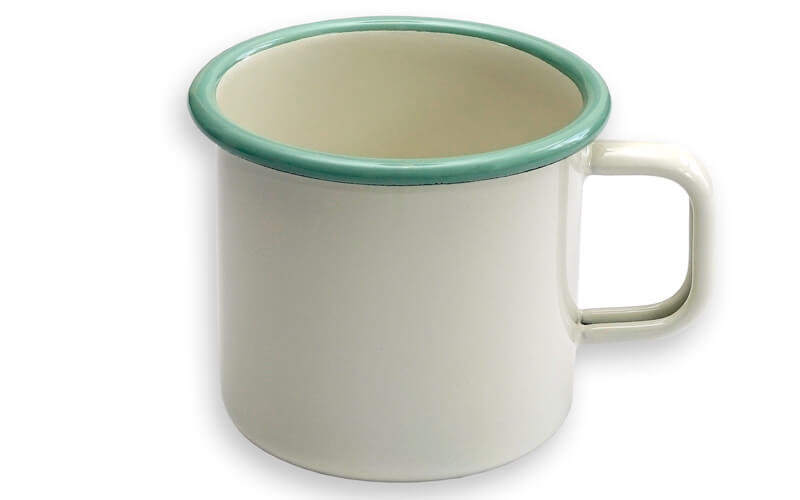 Op de site van Kadeloo is deze mok ook in blauw te verkrijgen Geëmailleerde Mok Blauw