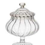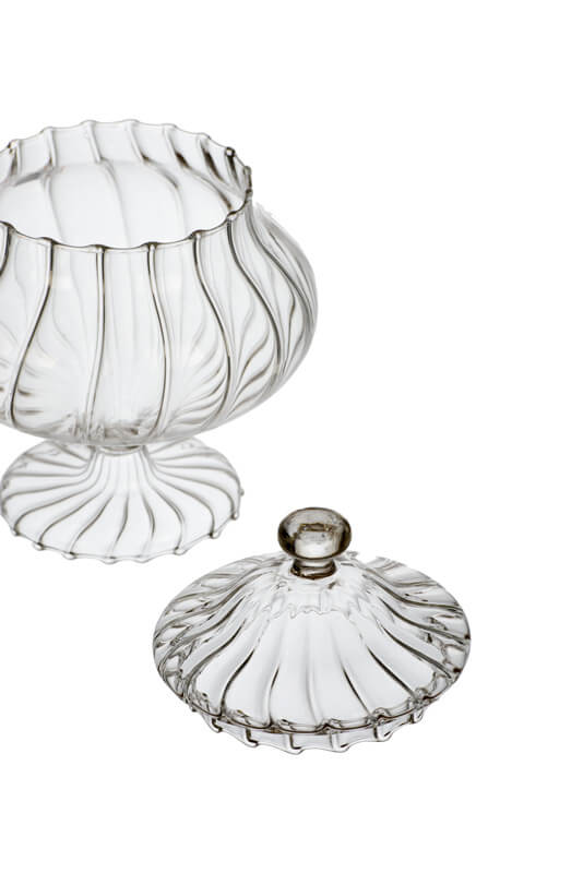 Breng elegantie en verfijning in huis met de Bonbonschaal met deksel Sahara van IVV. Deze luxe bonbonnière van helder borosilicaatglas combineert tijdloos design met een subtiele streepstructuur, geïnspireerd op de warme en stijlvolle Sahara collectie.