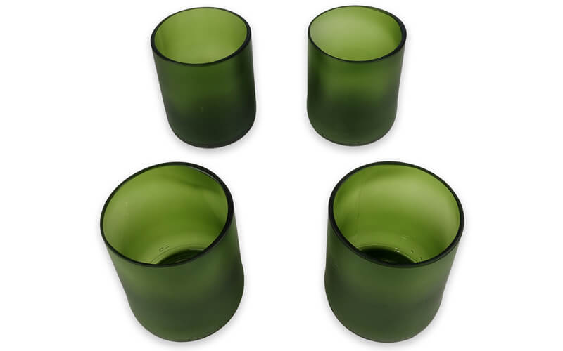 Glazen Culo Mat Groen. Een set van 4 glazen. Gemaakt van bestaand flessen glas. Puur ambachtelijk gemaakt. Leuk cadeau voor de wijn liefhebber!