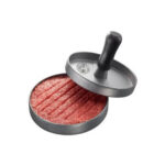 Deze aluminium hamburgerpers van Gefu is voorzien van een gegoten zink coating en een praktische kunststof handgreep. Met de handige hamburgerpers vorm je in een handomdraai de lekkerste hamburgers. Van de klassieke hamburger van 120 gram tot een king-size hamburger van 180 gram. Er wordt tegelijkertijd een ribbel patroon gevormd welke de burger een typische barbecue uitstraling geeft. Daarnaast wordt hiermee ook de baktijd verkort.