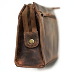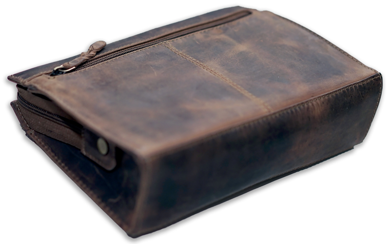 Een bruine toilettas van rundleer. Ideaal voor mee op reis of een overnachting buitenshuis. het is van het merk Kaszer. Leuk Cadeau voor een man. wij pakken het netjes in voor u.