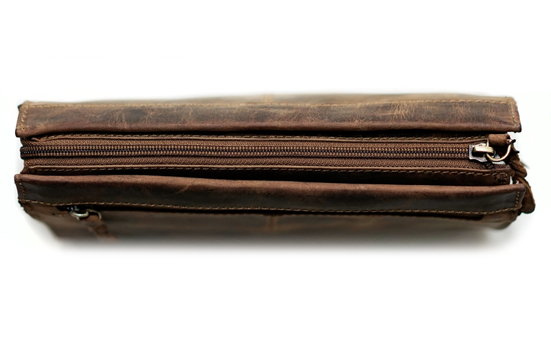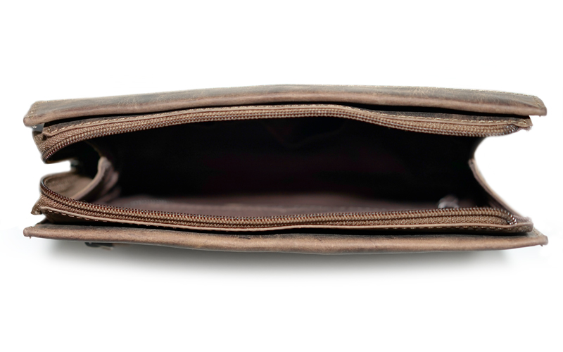 De etui is met een rits afsluitbaar. In de tas zit een vak welke ook met een rits afgesloten kan worden. De vakken zijn gevoerd.