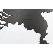 Het materiaal is een zwart HDF van FSC- gecertificeerd hout. Een zeer gedetailleerde landkaart als exclusieve decoratie aan de muur.