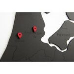 Zodra de landkaart aan de muur hangt kun je deze persoonlijk maken door met de 48 tags (3 kleuren) aan te geven waar je al bent geweest of nog naar toe wilt gaan.