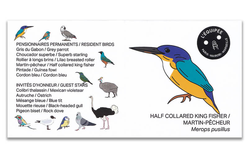 Ze zijn hand gesneden door Nicodemas, ornitholoog ( een beoefenaar van de vogelkunde) beeldhouwer. Zij dragen met trots bij aan de bescherming van de biodiversiteit door de vereniging Nature Kenya financieel te steunen.