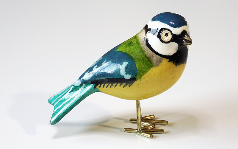 Houten vogel miniatuur Pimpelmees van het Franse merk L’ Equipe.