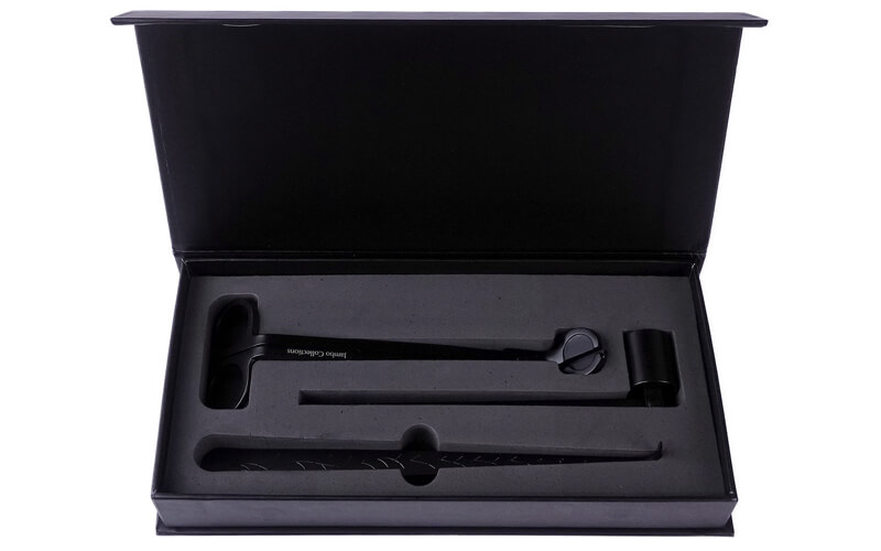 Het eerste deel van de set is de kaarsendover, ontworpen om kaarsen te doven zonder rook of geur achter te laten.