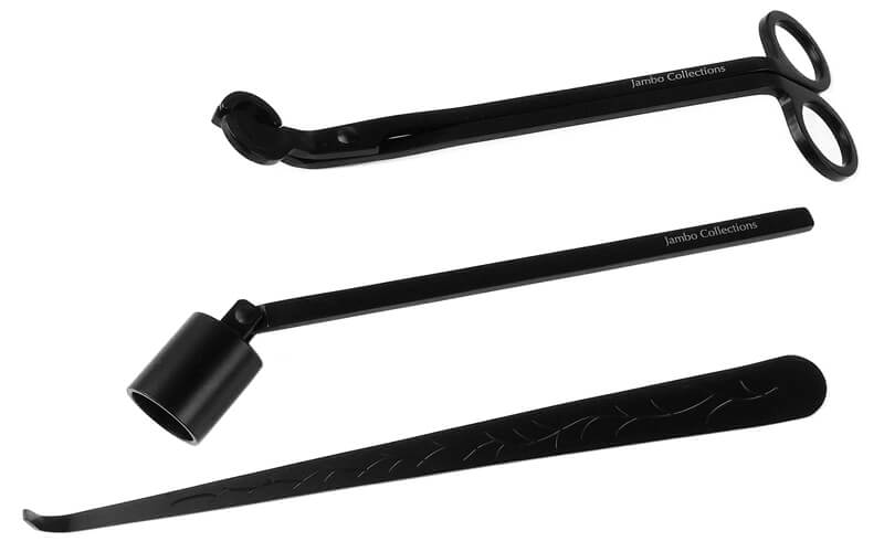 Kaarsen Verzorging Set Jambo. Een set voor het onderhoud van kaarsen. Een kaars dover, een kaars schaar om lonten op maat te houden en een pincet.