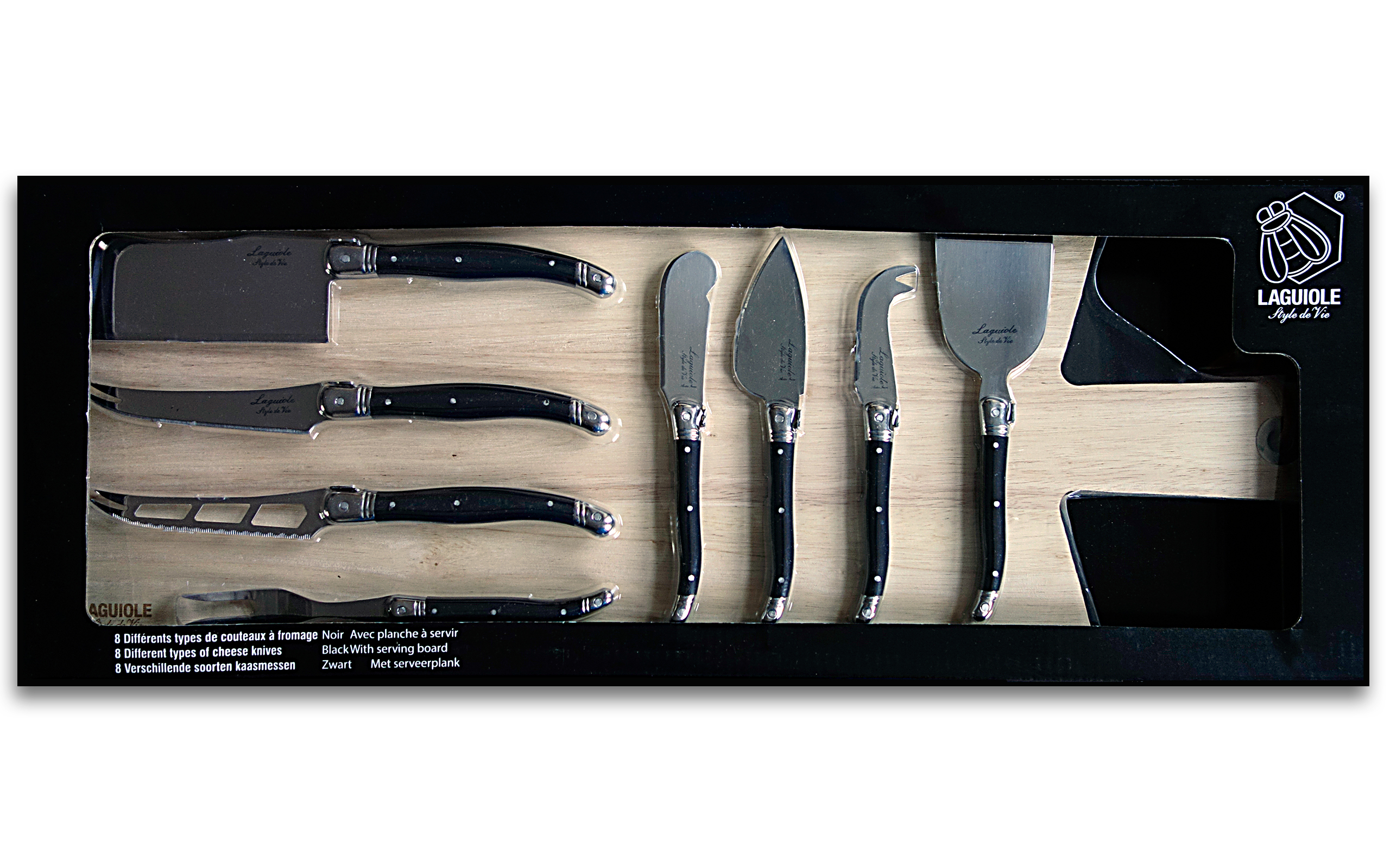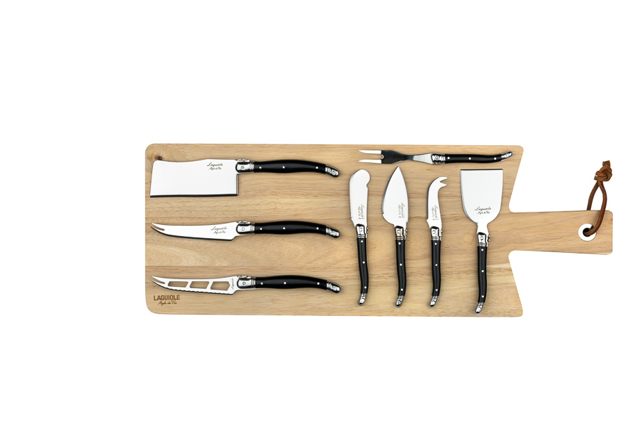 Zeer complete kaasplank met maar liefst 8 verschillende kaasmessen, hierdoor heb je voor elke kaas het juiste mesje. Het is van het merk Laguiole van Style de vie.