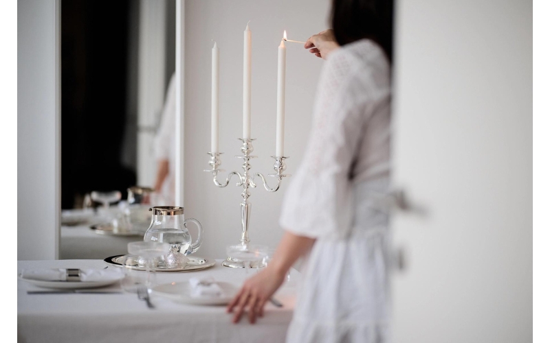 De kandelaar is verzilverd en is aanslagbestendig, dit betekend dat het niet gepoetst hoeft te worden. Schoonmaken met een zachte doek is voldoende.