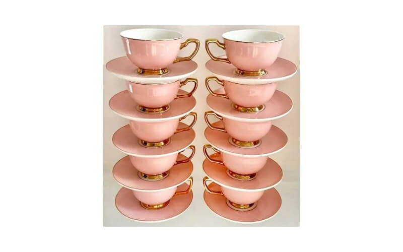 Met de Christina Re Blush Kop & Schotel met 24k goud geniet je van thee of koffie in pure elegantie – perfect voor een stijlvolle high tea of een bijzonder cadeau.