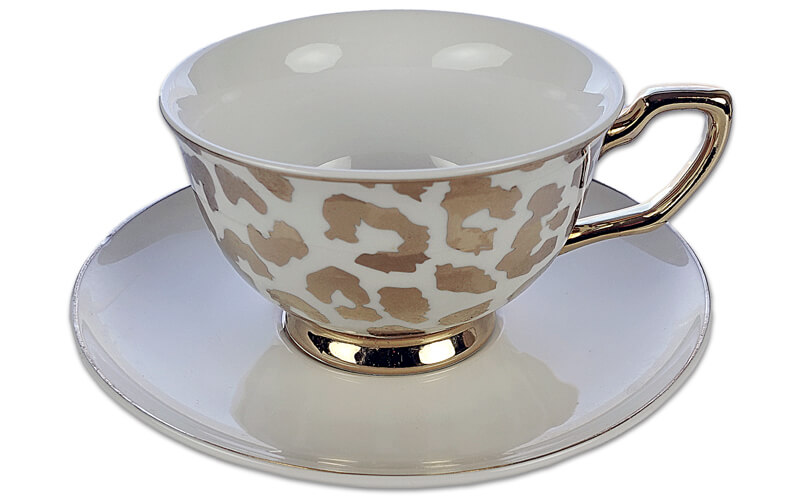 - Cadeau van elegantie: Als cadeau straalt deze kop en schotel met gouden luipaardprint een gevoel van elegantie en verfijning uit. Het is een attent geschenk voor liefhebbers van luxe servies.