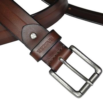 Een donkerbruine leren herenriem. Het heeft de klassieke breedte van 3,5 cm. In lengte eenvoudig te verzetten. Totale lengte is 105 cm. Het is van het gerenommeerde leerhuis Kaszer uit Frankrijk afkomstig. Mooi cadeau voor de man.