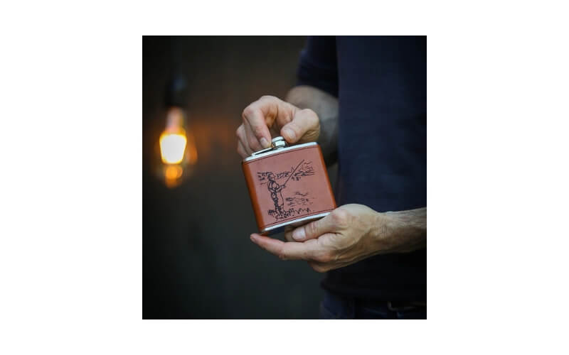 Leren Heupfles Visser is een van de heupflessen uit de collectie Classic British Sports van het Schotse merk Selbrae house. Een RVS, handgemaakt leren hip flask, met een afbeelding van een visser op de voorkant.