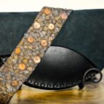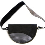 Lederen schoudertas ‘ Cowrie’ een handgemaakte schoudertas uit Nepal van hoogwaardig kalfsleer en suede met schouderband geborduurd met pailletten.