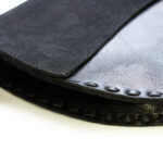 Een hoog kwaliteit soepel kalfsleer in combinatie met suède, versierd met pailletten in bruin-koper-goud kleuren.